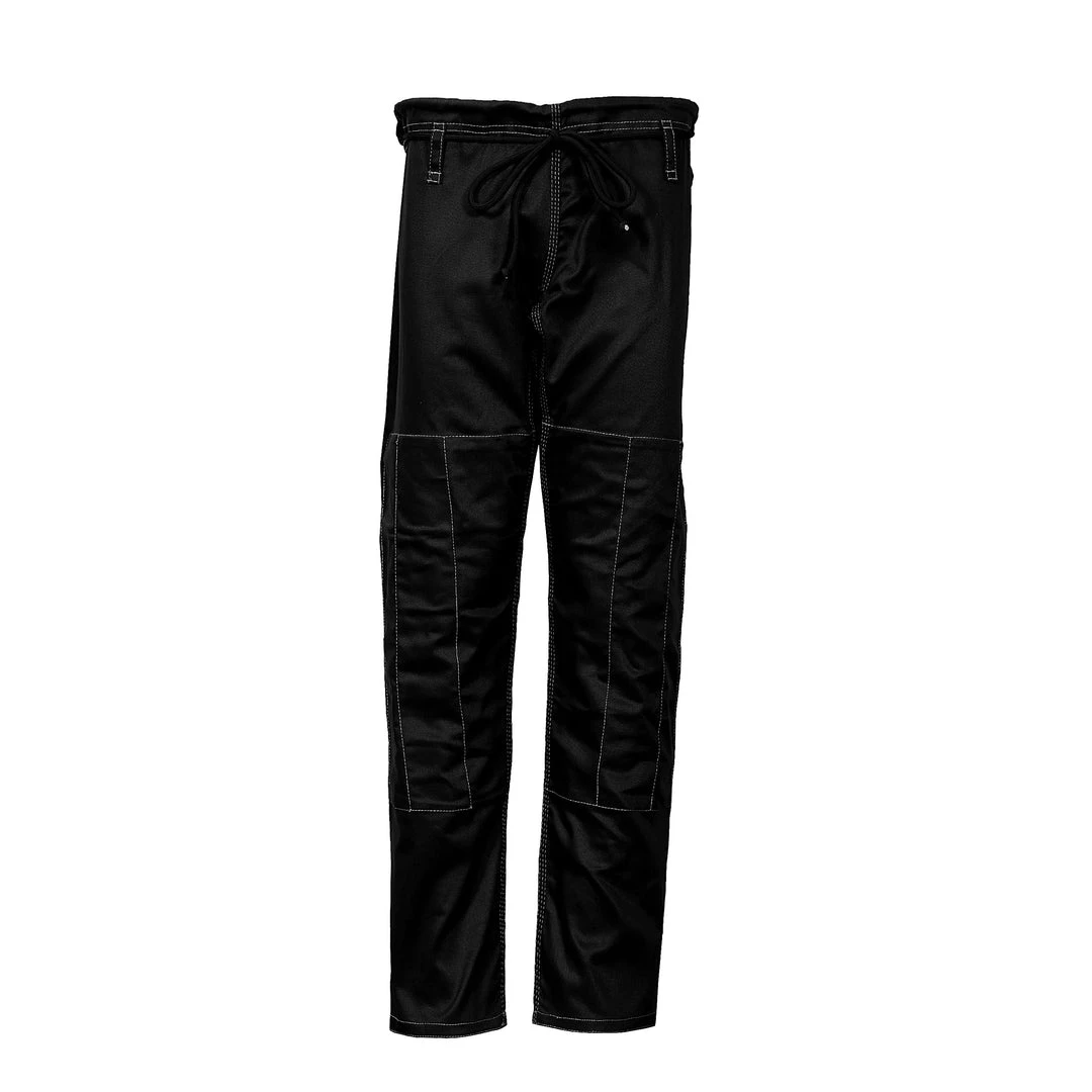 The Brazilian Jiu Jitsu pants are composed of heavy cotton with reinforced stitches & panels which offer maximum comfort and long lasting durability. Its preshrunk fabric will keep your fitting consistent. They come in black, white & blue colors.