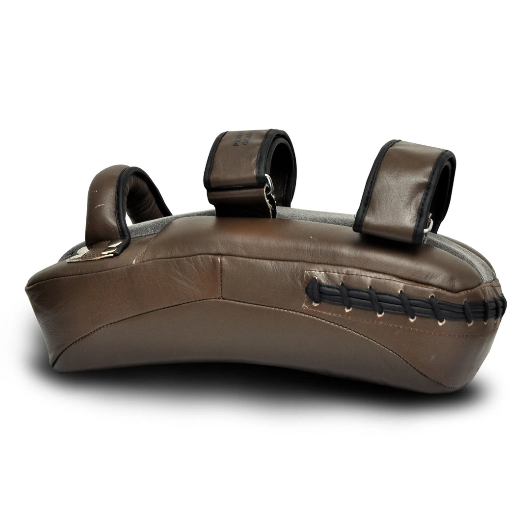 PFG’S vintage leather thai pads are made of genuine cowhide leather making its durability long-lasting and many layers of foam with slightly-curved design protects a person by absorbing the impact of kicks & punches. It comes with adjustable double velcro and high quality hook & loop straps which adjust according to your body and doesn’t allow it to slip. The velcro arm lock gives a great fit & convenience allowing for quick transitions from one training scenario to the next. Also it looks great & cool too.