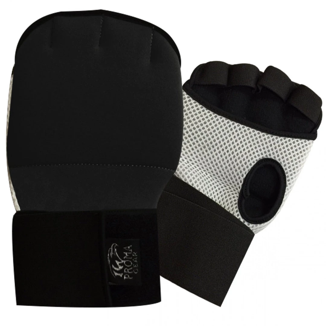 PFG’s gel wrap gloves are packed with gel padding enforced with a flexible cover for an excellent fist guard that provides impact resistance. It features a reinforced seam at the opening of the thumb and elastic bandage for better adjustment on the tip to make the glove more firm. Designed with a half finger design for greater control and assists in natural gripping. Gel filling offers greater impact absorption and ease for training. These gloves come with an adjustable wrist wrap with velcro closure so you get the perfect custom fit with balanced wrist stability, maximum wrist flexion & comfort adjustability and easy to wear & take off. These gloves are perfect to use alone for speed bag training, or to wear under a bag or boxing gloves.
