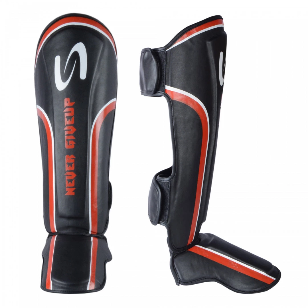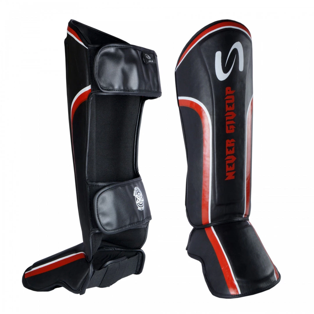 🛡️【MATERIAL】: Take your MMA session’s to the next level with our ‘Never Give Up’ series shin instep. Individually hand-crafted using premium quality faux leather for integrated durability and crack resistance during heavy training. Perfectly assists you in Muay Thai, Kickboxing, MMA, Karate and more.