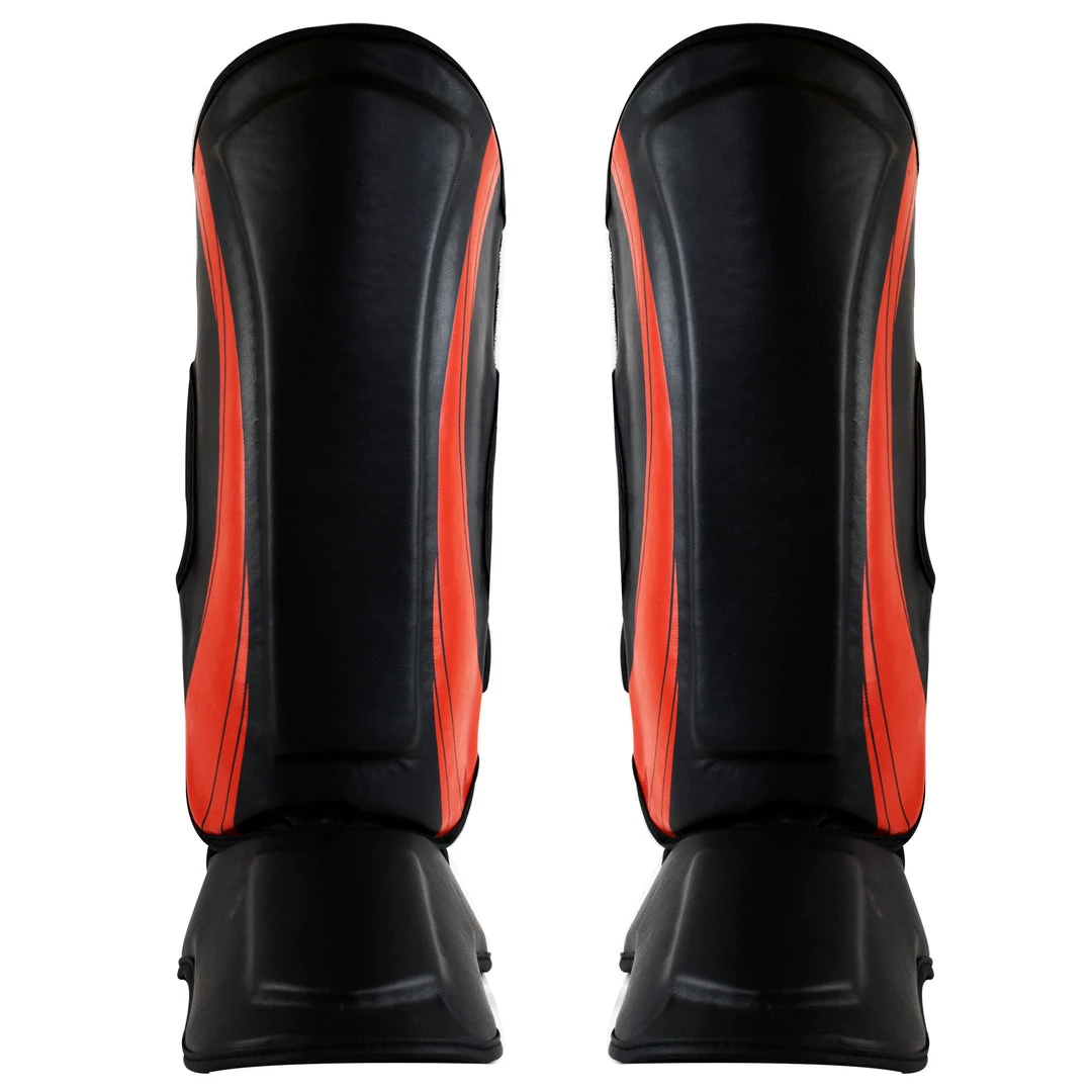 🛡️【MATERIAL】: Ultimate Shin Guard is of premium quality faux leather construction for integrated durability and crack resistance. Our PMG Shin Guard will allow you to deliver the power of your high kick without compromising your safety. Perfectly assists you in Muay Thai, Kickboxing, MMA, Karate and more.