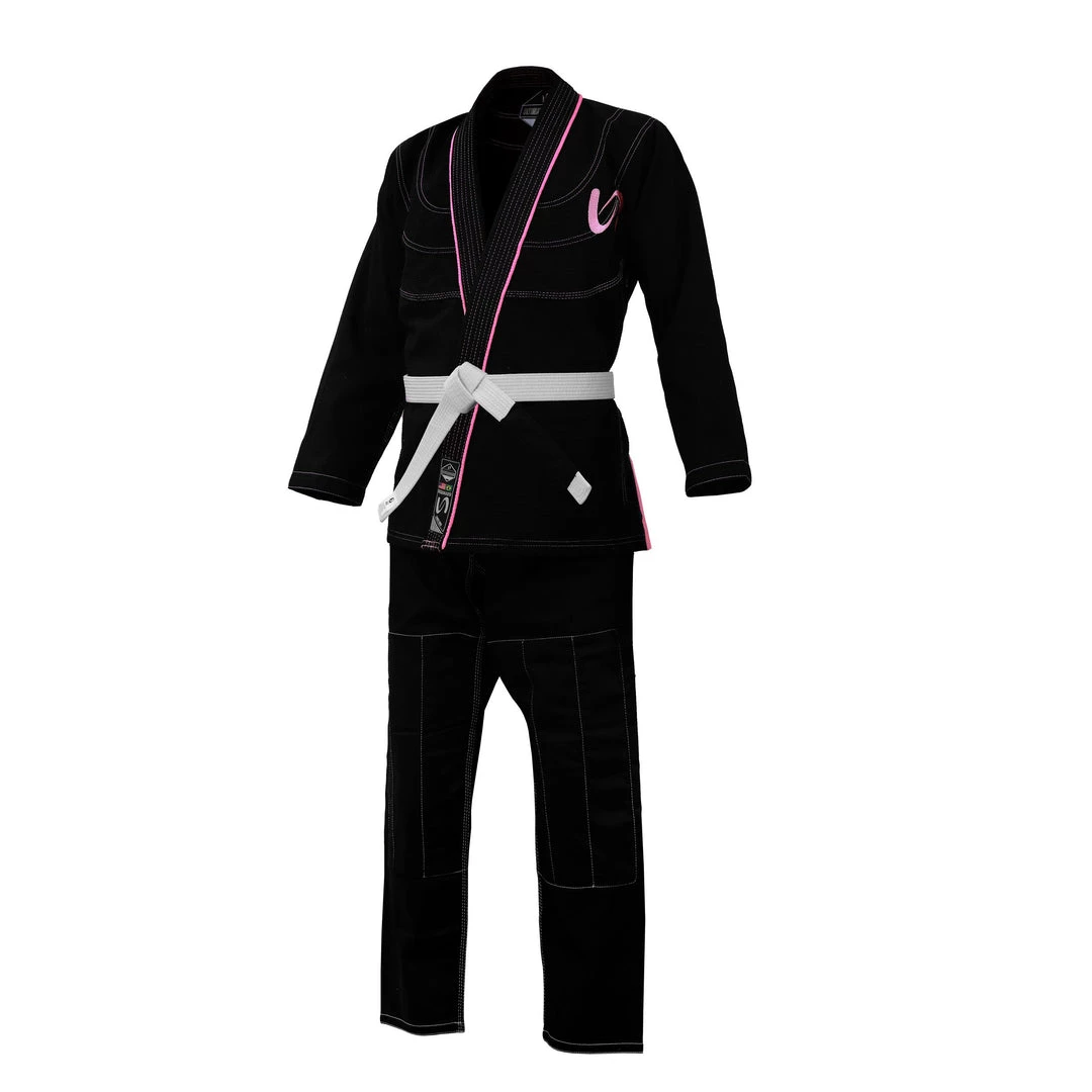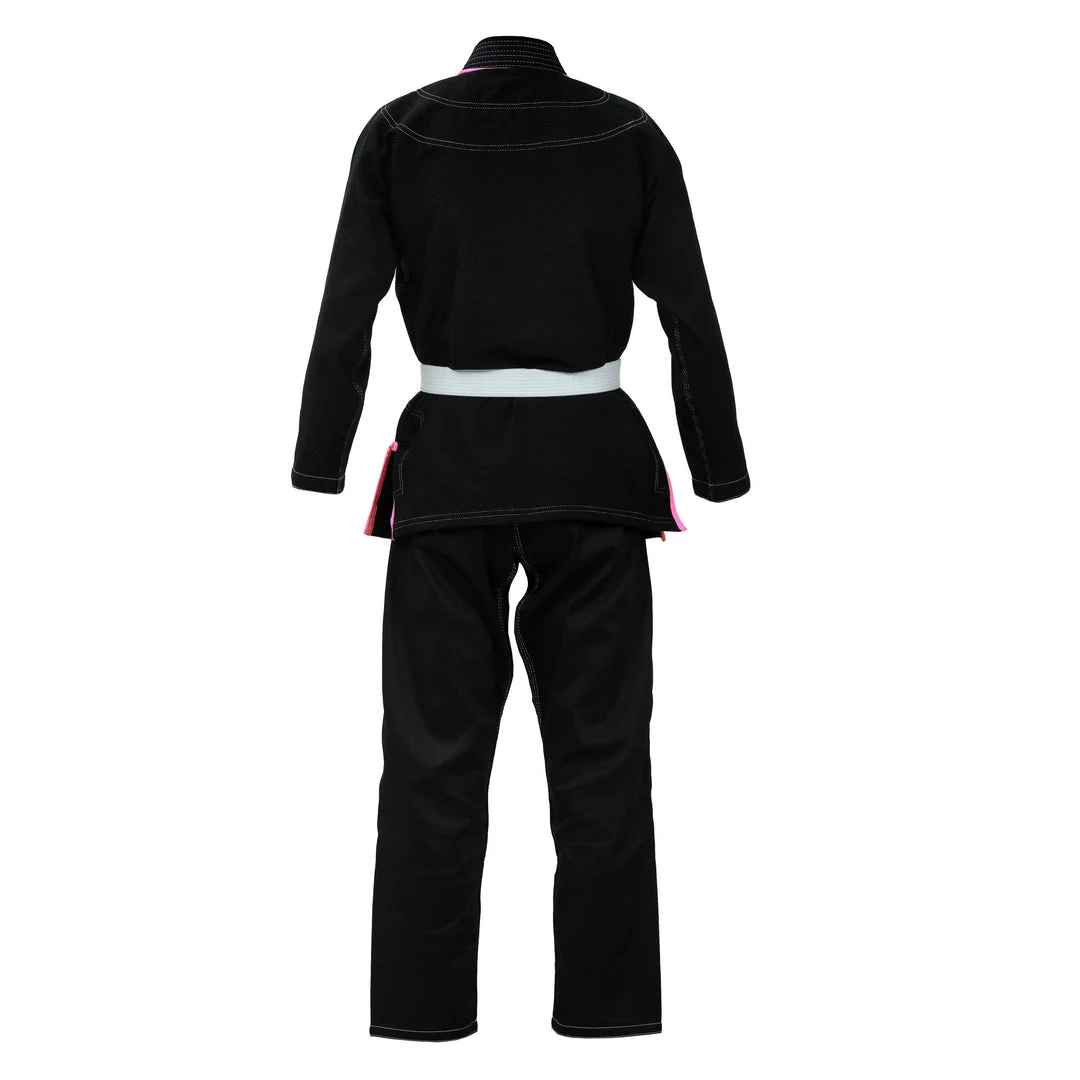 PFG has constructed a premium high quality Brazilian Jiu-Jitsu Gi for women which are made of 400gsm pearl weave fabric which is specifically preshrunk for a tailored fit and thanks to the high quality yarn blend, the gi allows you to maneuver without compromise. Reinforcement panels with contrast piping throughout for a unique look and to make it extremely durable. The hold sleeve technology provides you the competitive edge. Knee padding panels and elastic padded drawstrings allow for maximum comfort and better movement while on the mat. IBJJF approved.